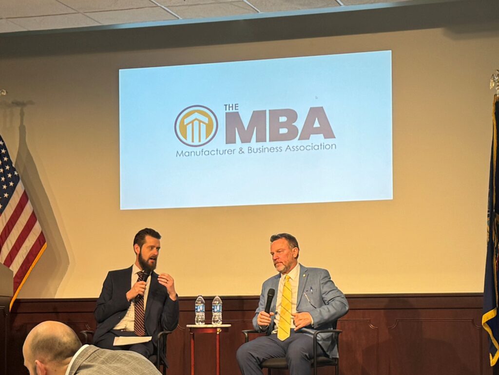 Today, the Manufacturer’s & Business Association held their first legislative luncheon of the year at their office in Erie, PA. Senator Dan Laughlin was the featured speaker today, as he gave an overview of what is happening throughout the Commonwealth and in Erie County. MBA Vice President Jezree Friend sat with Senator Laughlin after his presentation to further converse about Pennsylvania initiatives and politics. Paul Martin and Jeff Walentosky from Moody were part of the luncheon crowd.
