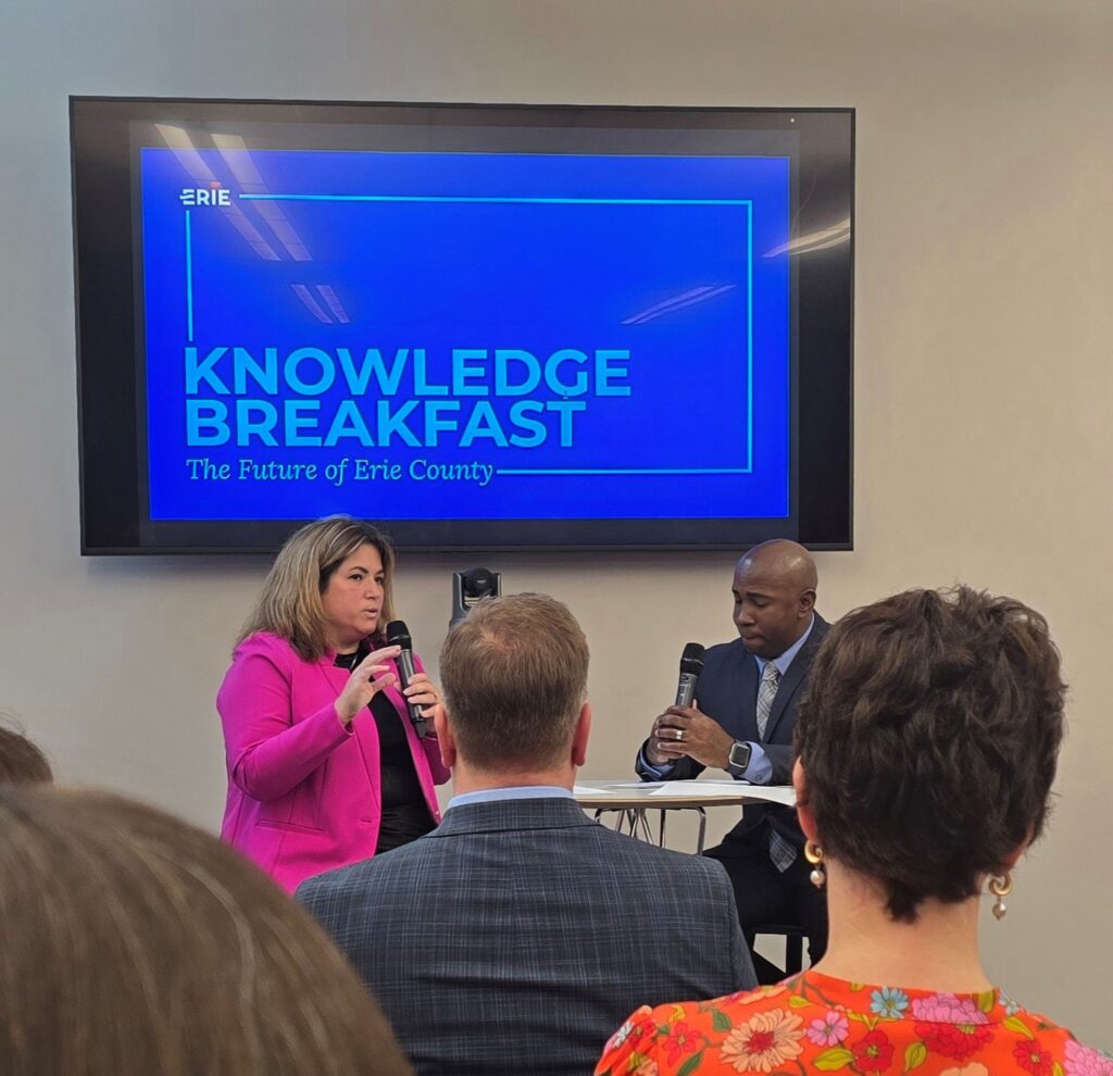 On Friday, February 20th, the Erie Regional Chamber and Growth Partnership held their February Knowledge Breakfast. The breakfast event featured a great conversation between Chamber President Brandon Mendoza and new Erie County Executive Christina Vogel. Paul Martin from Moody’s Erie office was in attendance, as Moody is a proud member of the Chamber.
